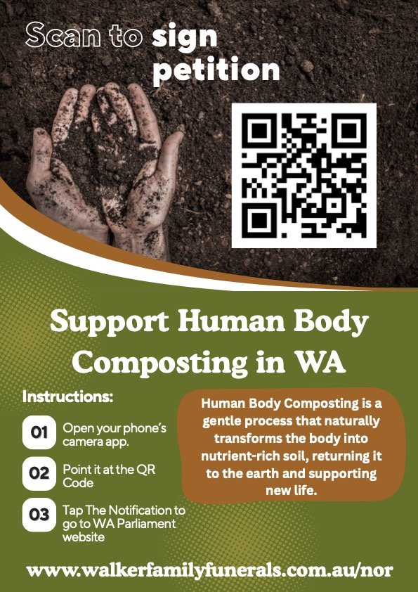We’re excited to share that our ePetition to legalise Human Body Composting in Western Australia is now live on the WA Parliament website — and will remain open for six months.